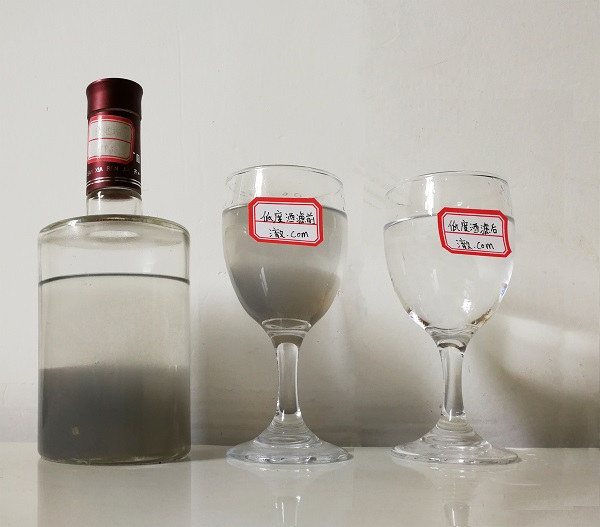 降固性物超標、新酒催熟陳化一年、低度酒抗凍零下15度低溫不渾濁、經(jīng)該機過濾后白酒澄清度100%,可直接灌裝裝瓶。